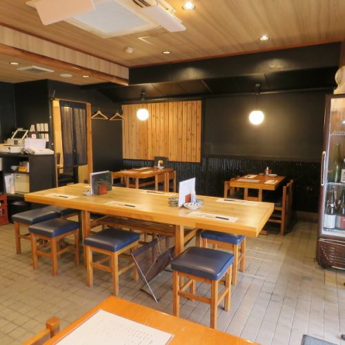 和の雰囲気が漂う落ち着いた店内に、4名様用のテーブル席や2名様から8名様までご利用可能な長テーブルをご用意しております。お客様同士の距離感が心地よく、活気がありながらも騒がしすぎない、和やかな空間です。お仕事仲間やご友人との気軽なお食事に最適です◎ぜひお気軽にご来店くださいませ!